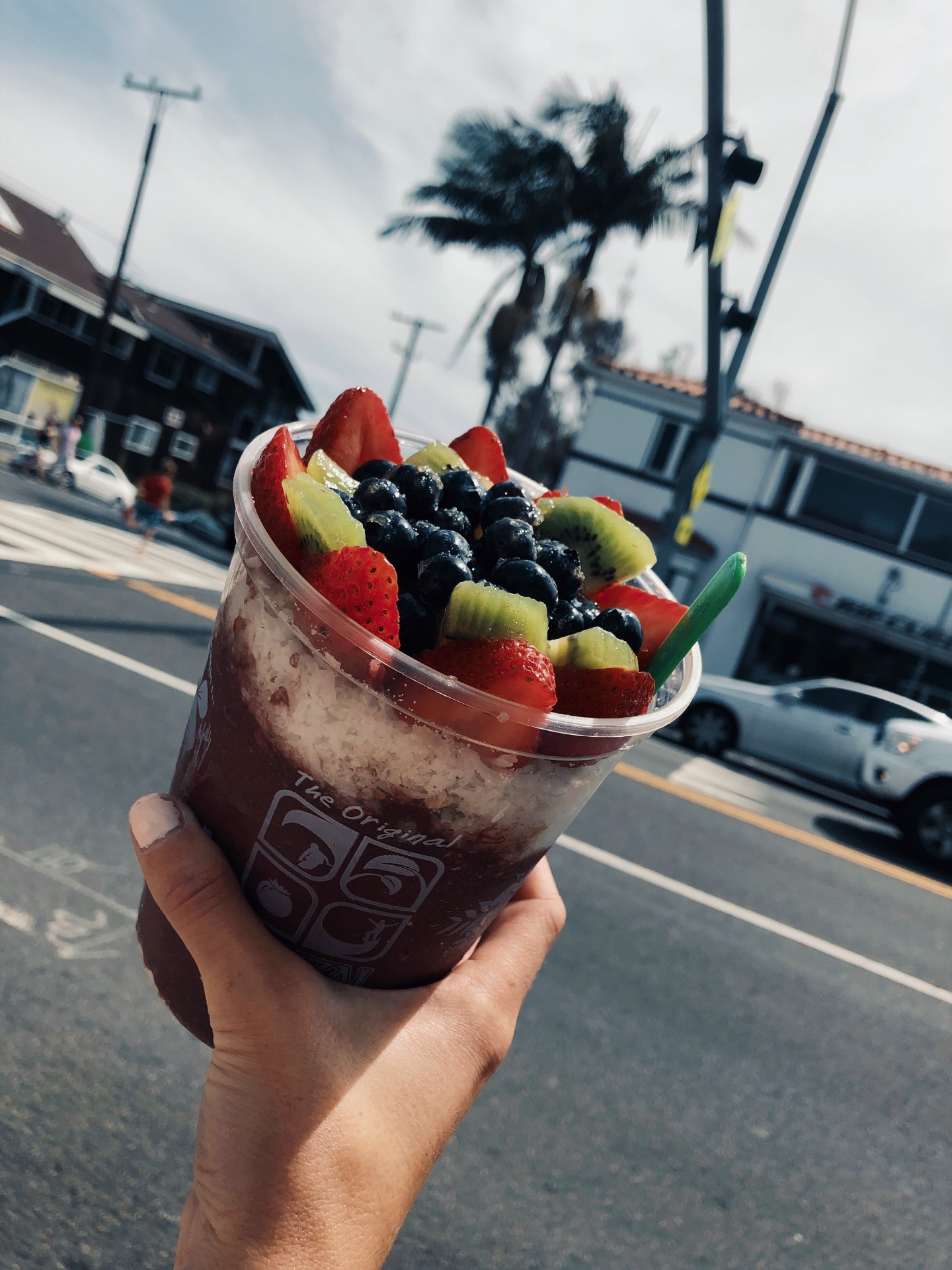 We are always on the hunt for a good Acái bowl and we hit GOLD in laguna. Now, for me it's hard to beat my favorite local spot in Tampa, Grain and Berry. I will say this was pretty dang close. AND the bowl was def a bang for your buck. Banzai Bowls off of PCH in Laguna! They offer both small and large bowls. Personally, I feel like if you hit this place- you gotta go with the Large. When we got there the line was pretty long and time we got our bowls to go the line was out the door. I went with the Maui Sunrise and Bry went with the Banzai Bowl w/ apple juice. IT WAS AWESOME and highly recommend.